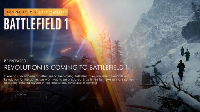 Mit dem Battlefield 1 Logo und dem Begleitsatz “Revolution is Coming” werden Battlefield 1 Spieler während des Spielstarts seit heute überrascht. Für uns als Spieler in Deutschland gab es wohl aber einen Patzer in der Übersetzung, denn der Text, der die “Revolution” erklären soll, fehlt.