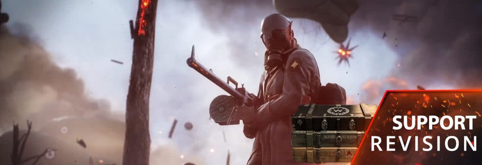 Die heute veröffentlichte Support Revision der Battlefield 1 Battlepacks beinhaltet auch wie die Revisionen in den vorherigen Wochen 28 Skins sowie drei Bonusitems. Von den 28 Skins sind 7 gewöhnlich, 13 höherwertig und 8 legendär. Unter allen Skins befindet sich auch ein Fahrzeugskin für den Light Tank.