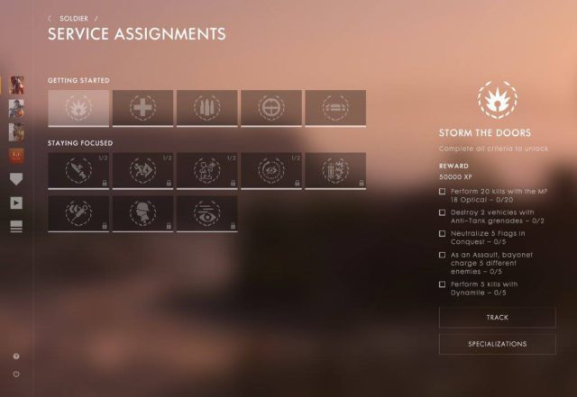 - Bereite dich mit dem Spezialisierungssystem besser denn je auf die Schlacht vor. Neue Anpassungsoptionen ermöglichen dir, deine Effektivität auf dem Schlachtfeld zu erhöhen und mit deinem Soldaten neue Spielweisen zu entdecken. Alle Spieler starten mit einem Set von Basisspezialisierungen, und durch den Abschluss von Dienstaufträgen können zahlreiche weitere Spezialisierungen freigeschaltet werden. Dienstaufträge sind neue Herausforderungen, die deine soldatischen Fähigkeiten auf eine harte Probe stellen. Beweise mit Erste-Schritte-Dienstaufträgen, dass du das Zeug zum Soldaten hast, bevor du dich den schwierigeren Aufträgen der Kategorie “Wachsam bleiben” zuwendest. Konzentrierst du dich auf ein Kit oder vervollständigst du sie alle, um ein Alleskönner zu werden?