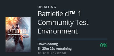 Der Pre-Load des heutigen Battlefield 1 Community Test Environment Updates hat begonnen. Das Update ist 2,82 GigaByte groß.
