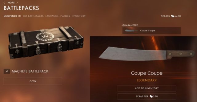 Bei der neuen Nahkampfwaffe handelt es sich um die “Coupe Coupe”, welche eine weitere Machete für das Battlefield 1 Nahkampfwaffen Arsenal ist. Solltet ihr das Battlepack noch nicht erhalten haben, so kann es einige Stunden dauern bis DICE das entsprechende “Macheten Battlepack” freigeschaltet hat.
