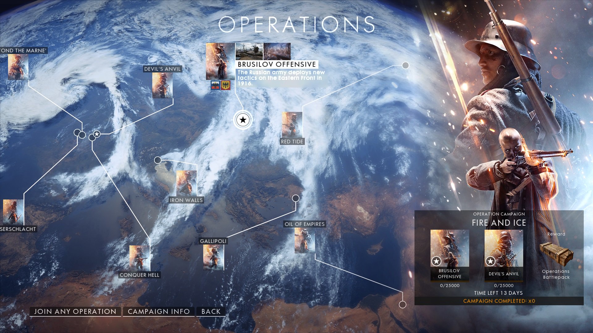 DICE hat eine neue Operations Kampagne für Battlefield 1 freigeschaltet. Die Kampagne trägt den Namen “Fire and Ice” und ist entsprechend mit passenden Maps ausgestattet. Im Rahmen der neuen Operations Kampagne spielt ihr nämlich auf den Maps Brusilov Offensive & Devil’s Anvil.
