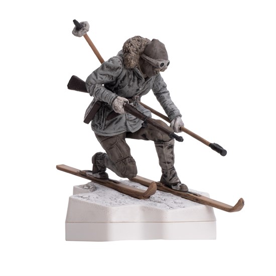 Die Figur bzw. dessen Character stammt aus dem Singleplayer von Battlefield V und trägt den Namen Solveig. Neben dem sportlichen Auftritt auf den Skiern trägt die Figur in der linken Hand das norwegische Mehrladegewehr Krag–Jørgensen und in der rechten Hand einen Ski-Stock. Platziert ist die rund 10cm große Figur auf einem aus Plastik bestehenden Eisberg, auf dessen Rückseite sich nochmal das Battlefield V Logo findet.