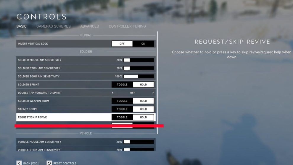 Die erste Änderung beschäftigt sich sogleich auch mit einer sinnvollen Anpassung. So kann in den Spieloptionen eingestellt werden, ob man im gefallenen Zustand via gedrückter Taste oder Hold nach einem Revive rufen will. Auch wenn das Sterben dadurch nicht besser wird, fallen einem vom vielen Rufen nach einem Medic die Finger nicht mehr ab.