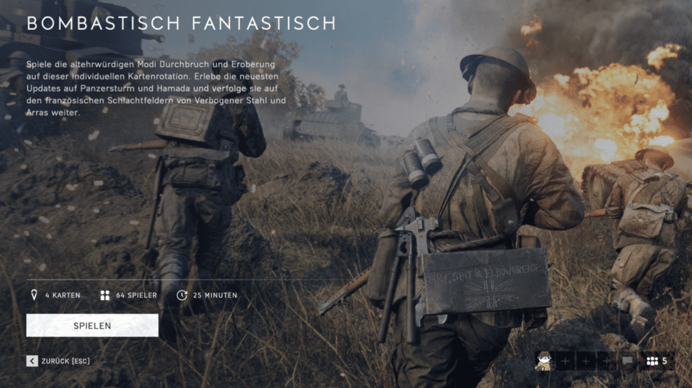 Wie lange die neue Map und Spielmodus Rotation verfügbar sind, ist bisher nicht bekannt. Wir gehen allerdings von etwa zwei Wochen aus. Ihr findet die Map Rotation im Multiplayer Menü von Battlefield V, an der Stelle wo früher Rush zu finden war.