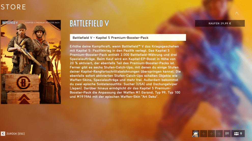 Passend zum fünften Kapitel Pazifikkrieg veröffentlichte DICE im Battlefield V Ingame Store auch sogenannte Booster Packs, mit denen euch das Aufsteigen im Kapitel Rang leichter fällt.
