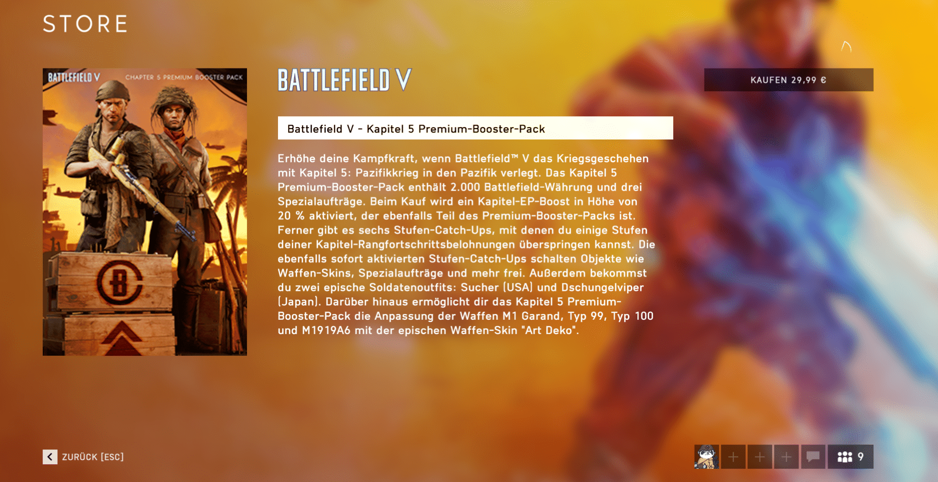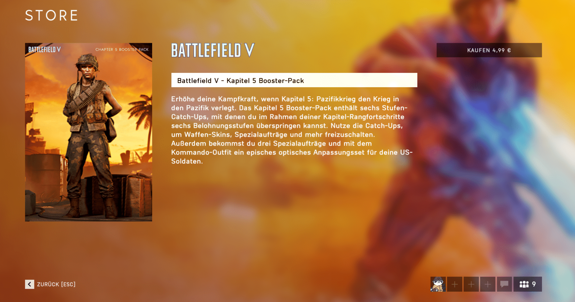 Passend zum fünften Kapitel Pazifikkrieg veröffentlichte DICE im Battlefield V Ingame Store auch sogenannte Booster Packs, mit denen euch das Aufsteigen im Kapitel Rang leichter fällt.