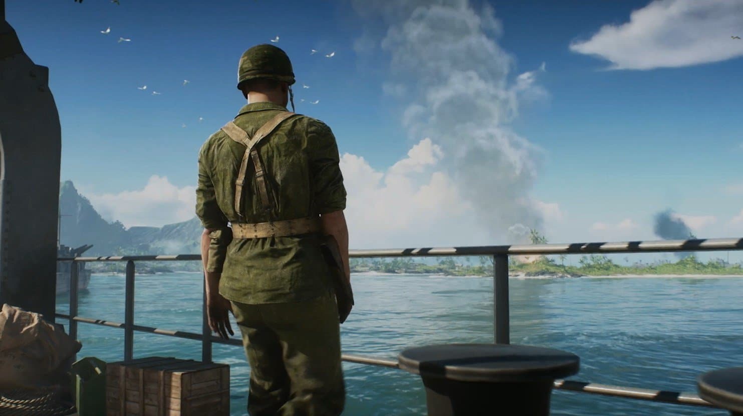 Die Worte beschreiben das auf uns wartende Szenario auch bedeutend besser und man darf darauf gespannt sein, was DICE uns am 23. Oktober 2019 – 15:00 Uhr deutscher Zeit im Rahmen des offiziellen Enthüllungstrailers zum neuen Tides of War Kapitel vorstellen wird. Das Artikelbild verspricht in jedem Fall schon einmal die M1 Garand als neue Waffe und ein Flugzeugträger ist ebenfalls wieder im Hintergrund zu sehen.