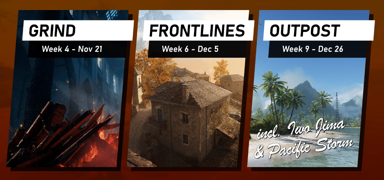 In den darauffolgenden Wochen, so die Informationen des Dataminers “temproyal”, sollen weitere Spielmodi folgen. Die beiden Spielmodi, um dies es geht, sind zwar bekannt aber keineswegs unbeliebt. Vom 05. -12. Dezember 2019 können wir demnach wieder den Frontlines Spielmodus genießen und ab dem 26. Dezember den Spielmodus Outpost samt der beiden neuen Pazifikkarten Iwo Jima und Pacific Storm.