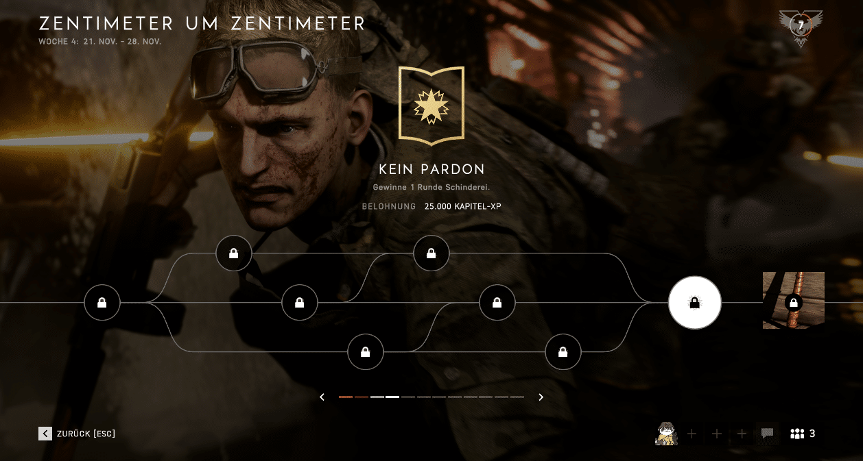 Den Anfang macht der “Grind” bzw. “Schinderei” Spielmodus, welcher uns in der kommenden Woche durch die Tides of War Mission “Zentimeter um Zentimeter” begleiten wird. Dies bestätigt bereits der offizielle Tides of War Kalender im Hauptmenü des Spiels.