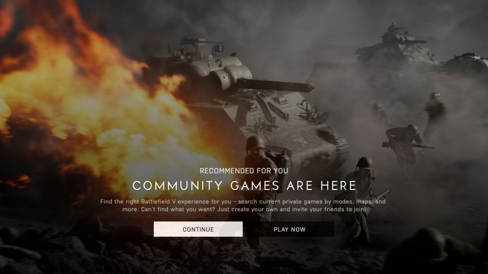 Die Community-Games wurden noch nicht veröffentlicht. Die Meldung im Ladebildschirm von Battlefield V wurde versehentlich zu früh veröffentlicht, und wird aktuell wieder entfernt.