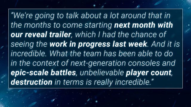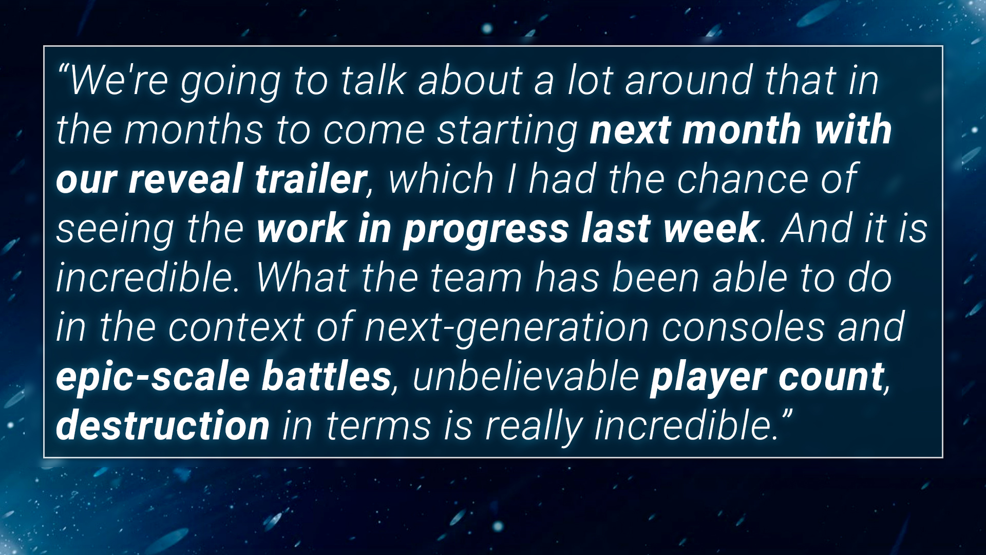 So gibt Willson an, dass der geleakte Trailer nicht ansatzweise das transportiert, was das Spiel und seine Features Wert sind. Im Trailer seien weder die vielen Spieler zu sehen, noch die umfangreichen Weiten der Spielwelt oder die Zerstörung.