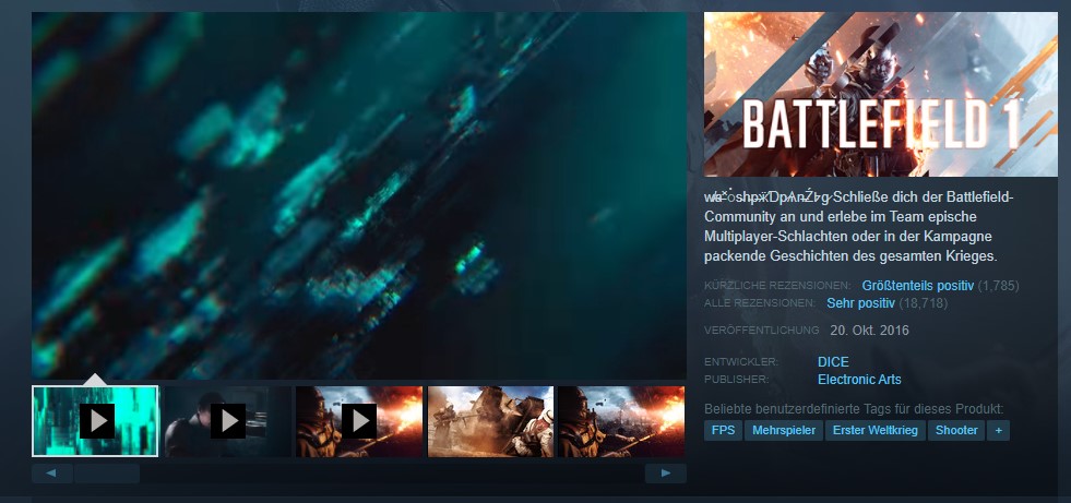 Auch im Playstation Store bzw. GamerHub haben sich Bilder geändert. Alle Battlefield Titel, außer Battlefield Hardline, die über den Playstation Store verfügbar sind, haben nun auch den “Glitchy” Look erhalten, den wir aus den offiziellen Trailern kennen. Auf den Battlefield Steam Produktseiten hat EA ebenfalls die Seiten geändert und neue Teaser Videos hochgeladen.