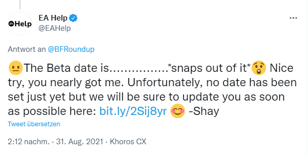 In einem neuen Tweet von EA Help verrät der Publisher, dass die Battlefield 2042 Beta noch kein Release-Datum hat und aus diesem Grund bisher auch kein Datum mit der Community geteilt worden ist. Zu den in den letzten Tagen kursierenden Gerüchten über die Möglichkeit einer Battlefield 2042 Beta, welche bereits an diesem Wochenende oder der kommenden Woche beginnen soll, sagt EA nichts.