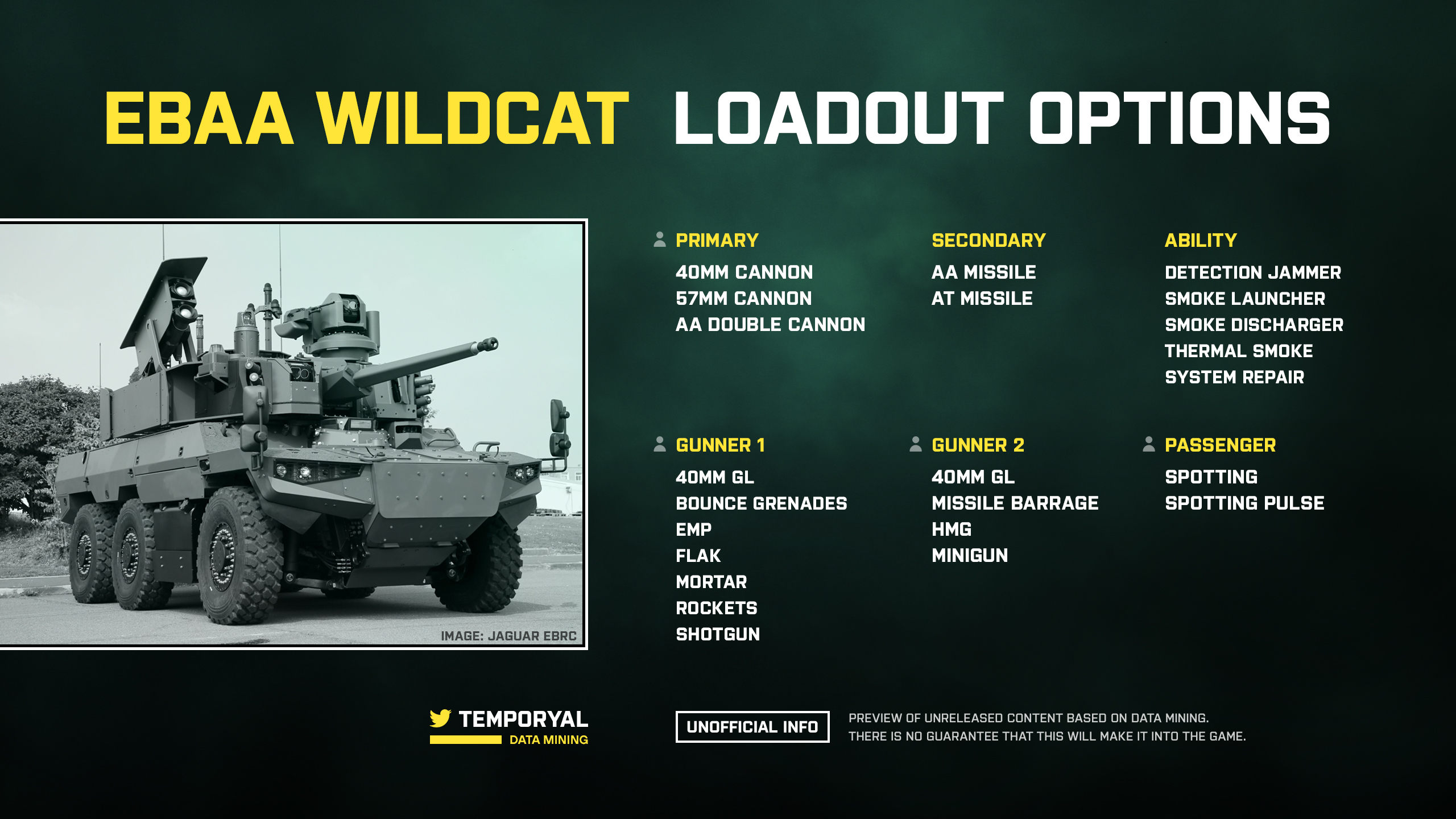 Nun legt Dataminer Temporyal noch einen drauf, denn er hat beim Analysieren der Spieldateien des Technical Playtests von Battlefield 2042 die Loadout-Optionen des leichten Wildcat-Schützenpanzers sowie der M5A3 entdeckt.
