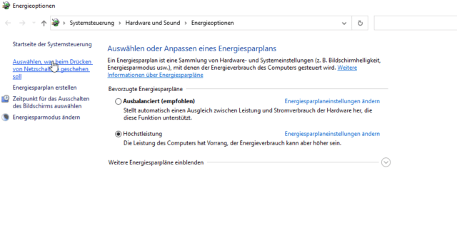 - Richtiges Energieprofil im Windows auswählen (Höchstleistung).