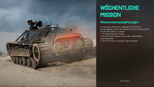 Spieler von Battlefield 2042 können seit Heute die dritte von vermutlich insgesamt 12 verfügbaren Missionen im Rahmen der Battlefield 2042 Pre-Season abschließen. Wie auch die Wochen zuvor wartet nach Erledigung der drei Aufgaben eine Belohnungen auf euch. Die dritte wöchentliche Mission ist ab sofort im Spiel verfügbar und belohnt euch mit einem epischen Skin “Diffuse Flotte” für den bei vielen Spielern gefürchteten M5C Bolte.
