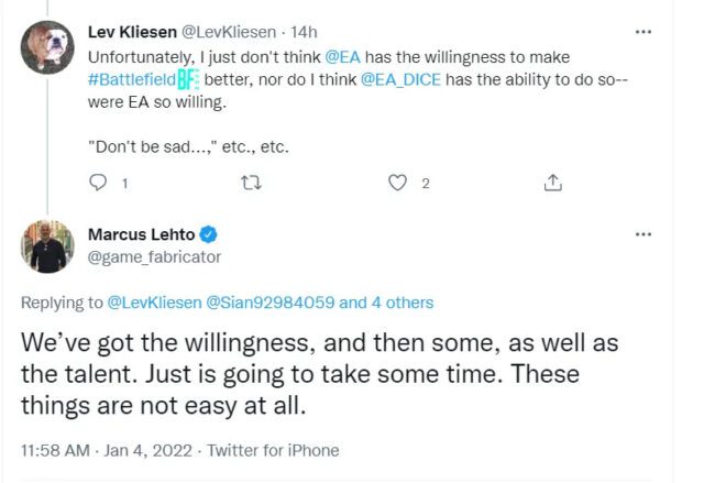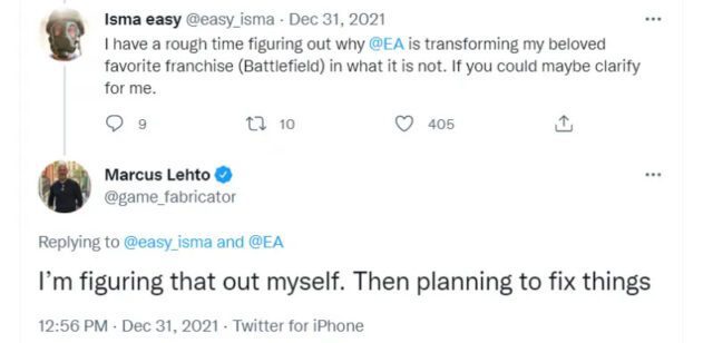 Kürzlich twitterte ein Spieler Lehto an und fragte nach, warum EA sein geliebtes Battlefield Franchise in etwas verwandelt hat, was nichts mit Battlefield zu tun hat. Marcus antwortete auf diesen Tweet und will die Antwort auf die Frage derzeit selber herausfinden und anschließend gezielt die Schwachstellen angehen. Dass es Zeit braucht und keine leichte Aufgabe ist, gibt Letho aber ebenso bekannt.
