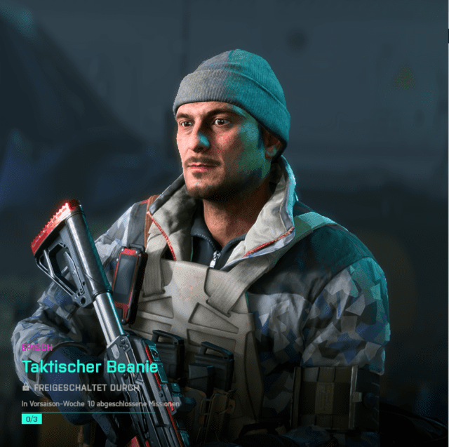 Die zehnte wöchentliche Mission ist ab sofort in Battlefield 2042 verfügbar und belohnt euch mit einer epischen Kopfbedeckung “Taktischer Beanie” für den Spezialisten “Angel”. Pro abgeschlossener Mission warten auch weiterhin 5000 Punkte auf euch. Was an der Beanie taktisch sein soll, überlasst ihr am besten eurer Fantasie ;)