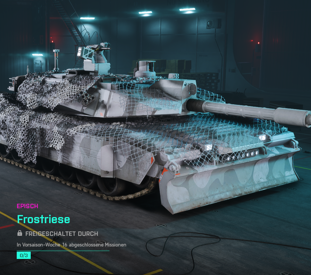 Die sechzehnte wöchentliche Mission ist ab sofort im Spiel verfügbar und belohnt euch mit einem epischen Fahreugskin-Skin “Frostriese”, welchen ihr für den Panzer “M1A5” ausrüsten könnt. Pro abgeschlossener Mission warten auch weitere 5000 Punkte auf euch.