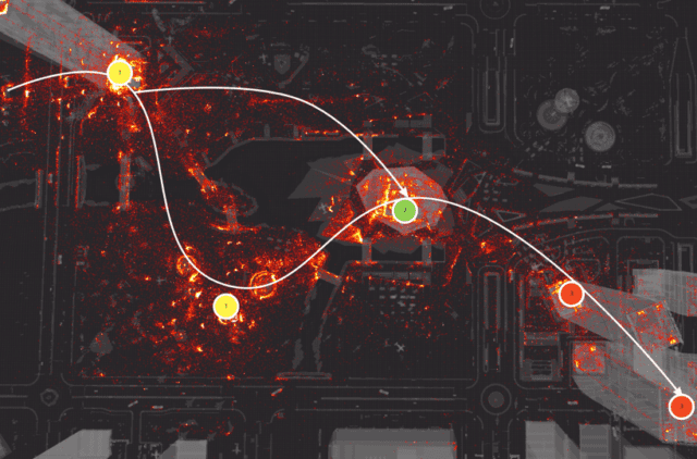 Als weiteres Beispiel haben wir die nachstehende Heatmap hinzugefügt, welche zeigt, dass große Bereiche der Karte nicht genutzt werden, da sie als zu gefährlich angesehen werden.