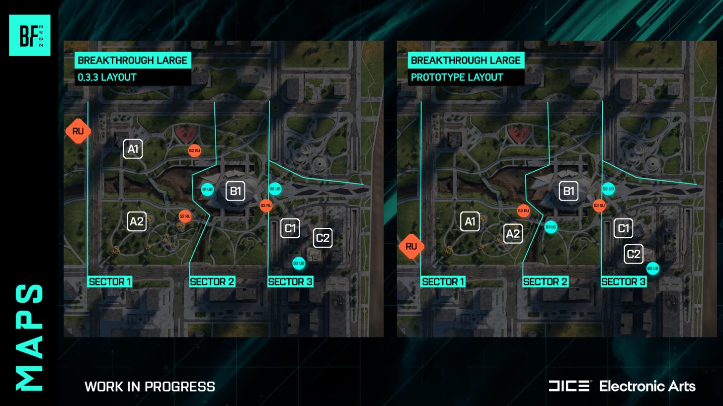 In Bezug auf Verbesserungen prüfen wir derzeit, ob es sinnvoll ist Breakthrough mit 128 Spielern statt 64 zu belassen, oder ob wir der Meinung sind, dass eine Reduzierung der Gesamtzahl der Fahrzeuge, die spawnen können, dafür sorgt, dass deren Präsenz nicht so überwältigend ist. Somit geben wir Infanteriespielern eine wichtigere Rolle.