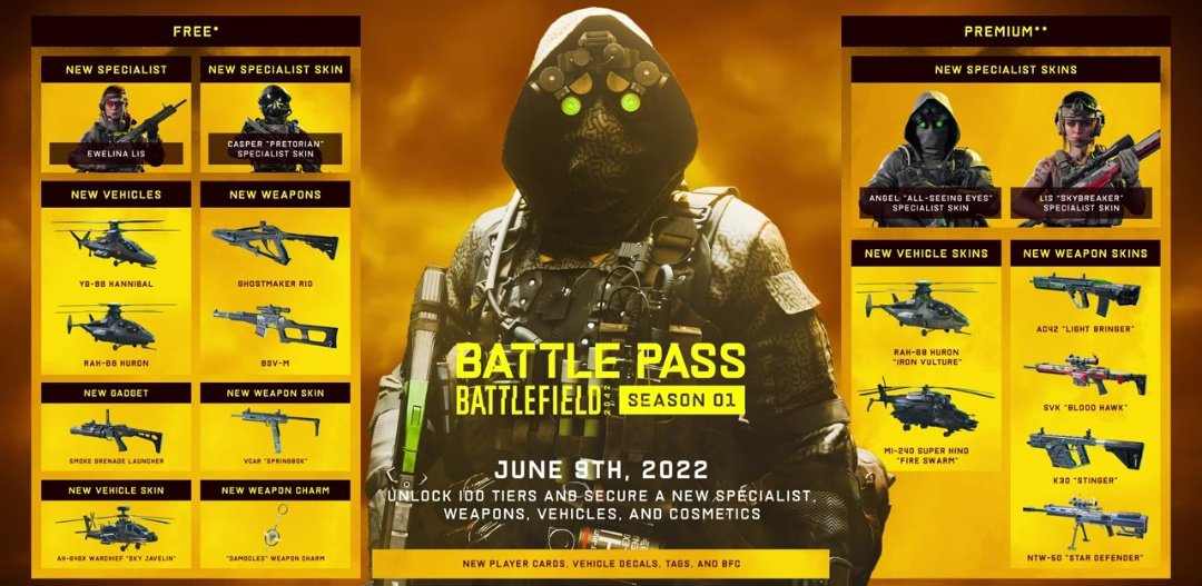 Besitzer eines Jahr-1-Pass bzw. Spieler, die Battlefield 2042 Gold oder Ultimate Edition gekauft haben, erhalten in jeder Saison automatisch den Spezialisten oder die Spezialistin sowie den Premium-Battle-Pass.
