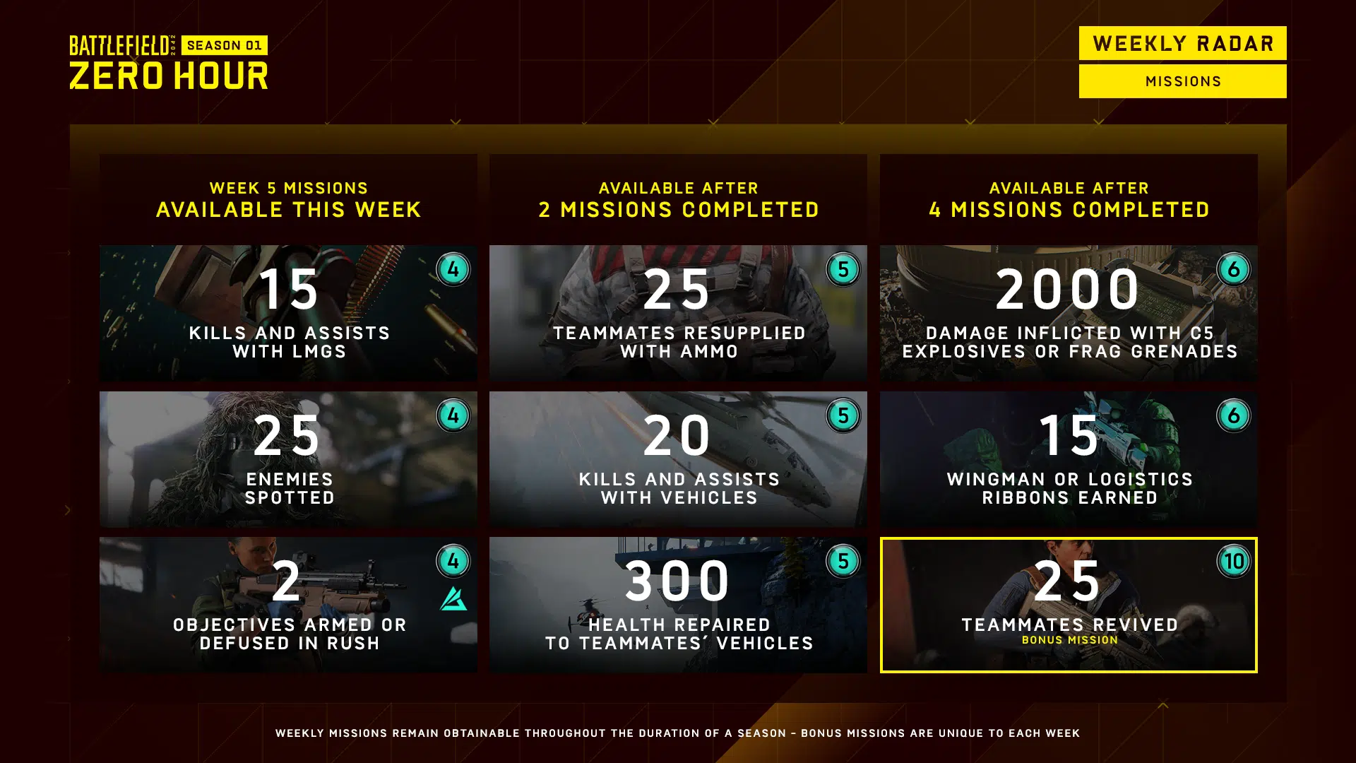 Für diejenigen, die sich auf die neuen Aufgaben in Battlefield 2042 freuen, ist es jetzt wieder Zeit das Spiel zu starten, denn die fünfte Woche des ersten Season Pass “Zero Hour” hat begonnen und liefert neue Aufgaben, Spielmodi und Herausforderungen. Nachfolgend erfahrt ihr mehr zur fünften Battle Pass Woche.