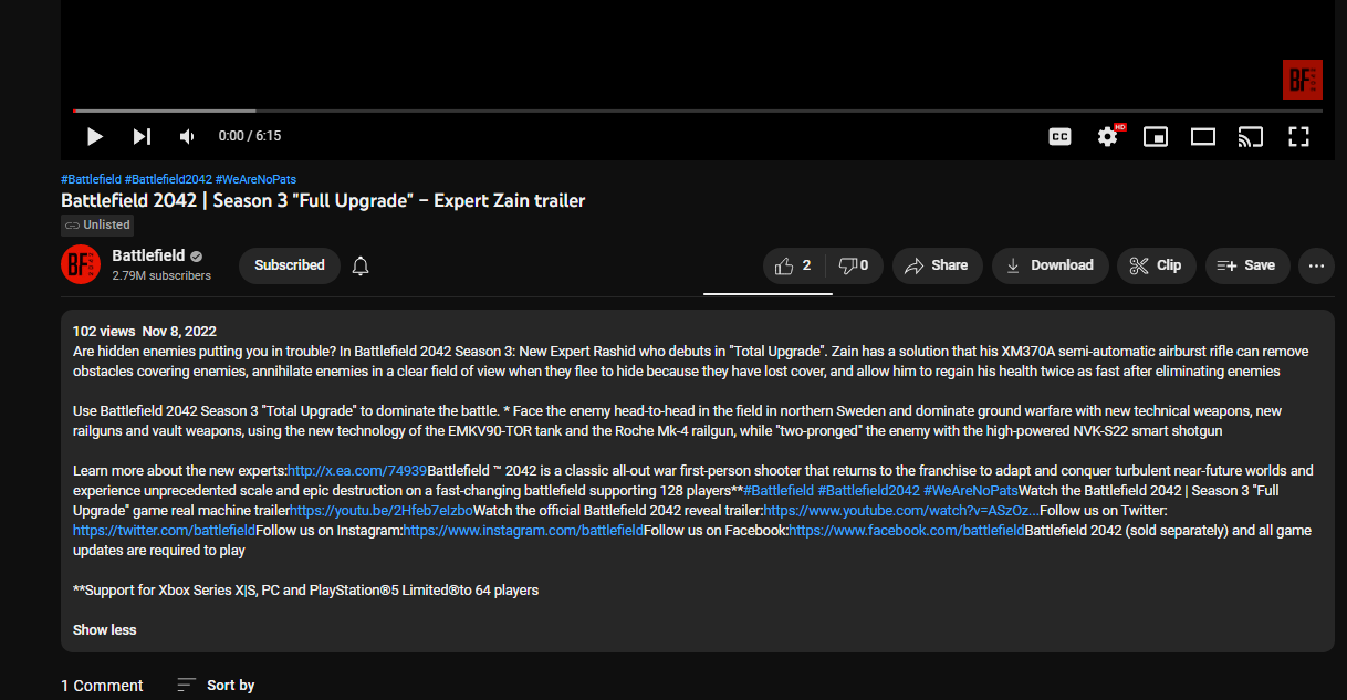Mehr ist zu den Inhalten, welche wir ab Anfang November erwarten, allerdings nicht bekannt. Durch einen Fehler in der chinesischen Beschreibung des jüngst veröffentlichten Entwickler-Update-Videos, in dem die oben genannten und recht ungenauen Details über die kommende dritte Season von Battlefield 2042 preisgegeben wurden, scheint sich allerdings ein Fehler eingeschlichen zu haben.
