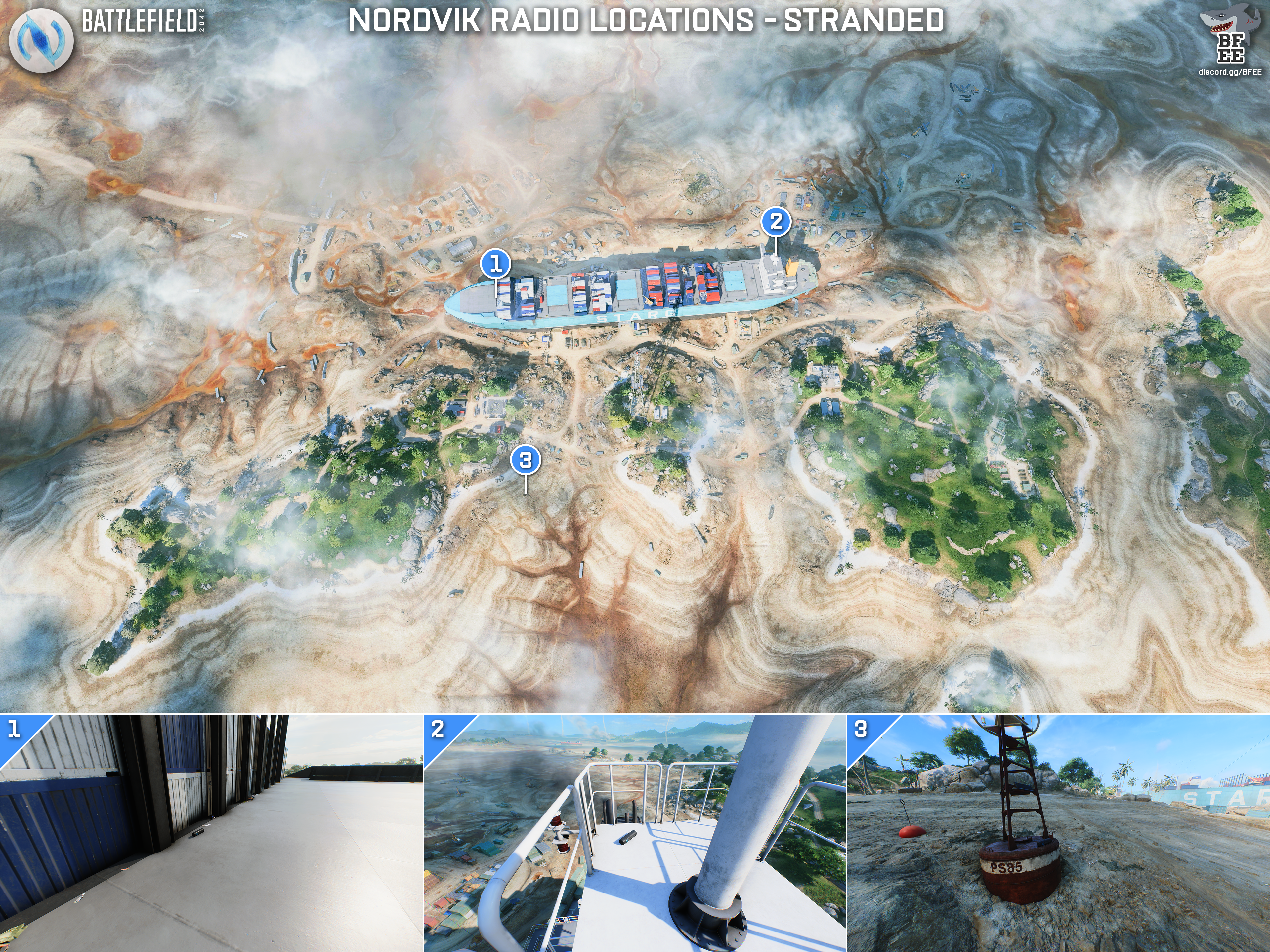 Die Battlefield Easter Egg Community hat sich wie auch schon zum letzten Easter Egg in Battlefield 2042 die Mühe gemacht und die Locations der Radios auf den Kartenübersichten eingezeichnet. Wo ihr die NORDVIK Radios findet, könnt ihr daher den nachfolgenden Bilder entnehmen.