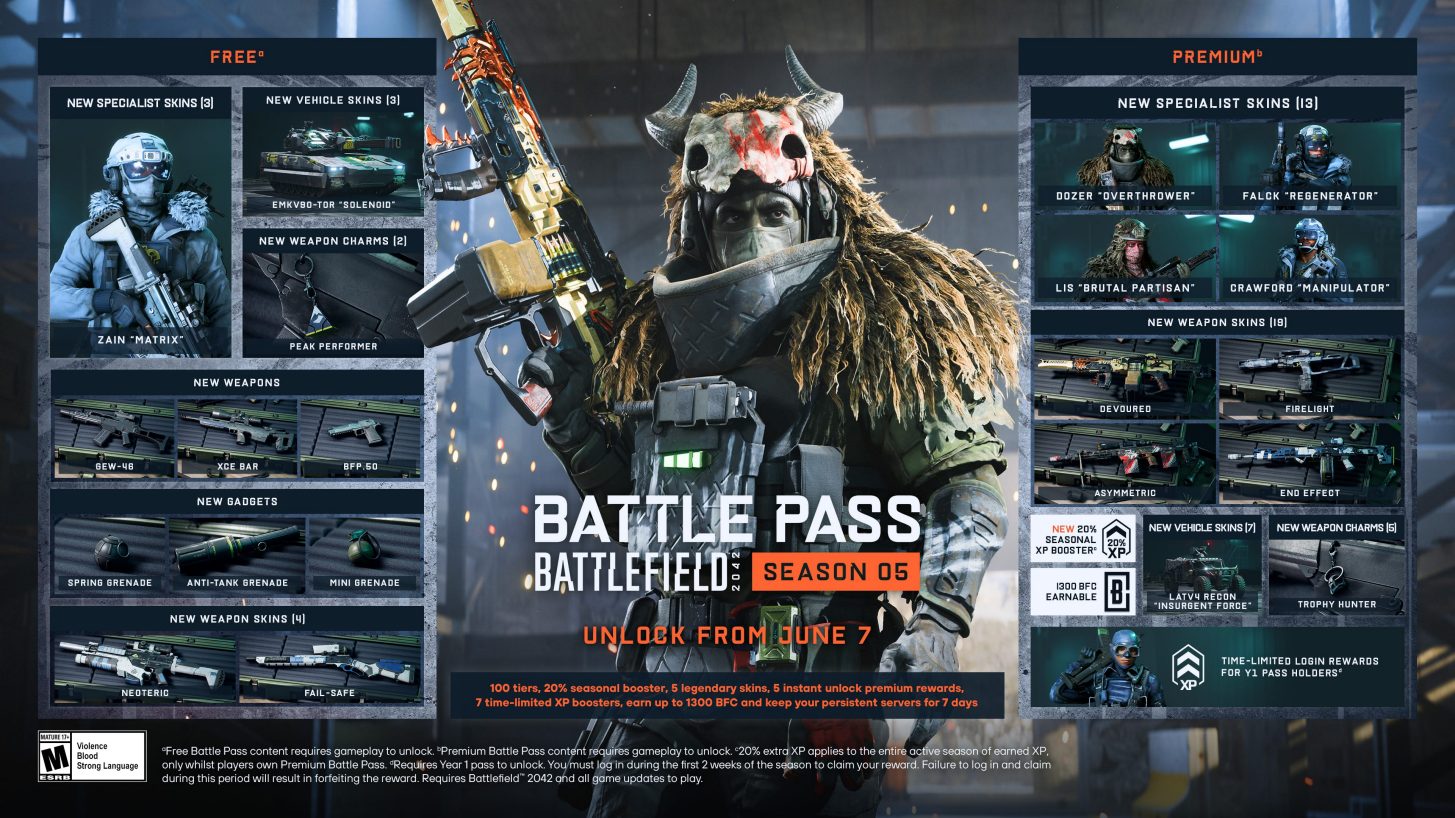 - Neuer Battle Pass mit brandneuen Kosmetikgegenständen für Spezialisten, Waffen, Fahrzeuge und mehr.