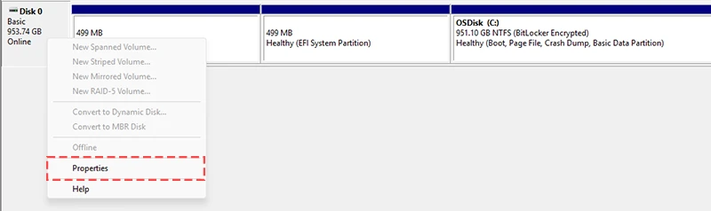 - Finde die Angabe OSDisk (C:) und klicke mit der rechten Maustaste auf die linke Spalte und wähle dann Eigenschaften.