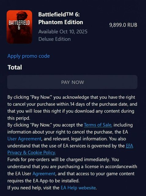 Update: Kürzlich sind Screenshots aus einem russischen EA-Store aufgetaucht, die das Veröffentlichungsdatum von Battlefield 6 eindeutig bestätigen. Demnach ist der 10. Oktober 2025 als offizieller Release-Termin vermerkt. Diese interne Vorschau untermauert die bereits kursierenden Informationen und bringt weitere Gewissheit für Fans, die gespannt auf den Launch warten. Noch steht die finale Bestätigung von EA und DICE aus, doch der 10. Oktober rückt damit immer näher. Ebenfalls wurde das Cover Art der Phantom Edition erneut bestätigt.