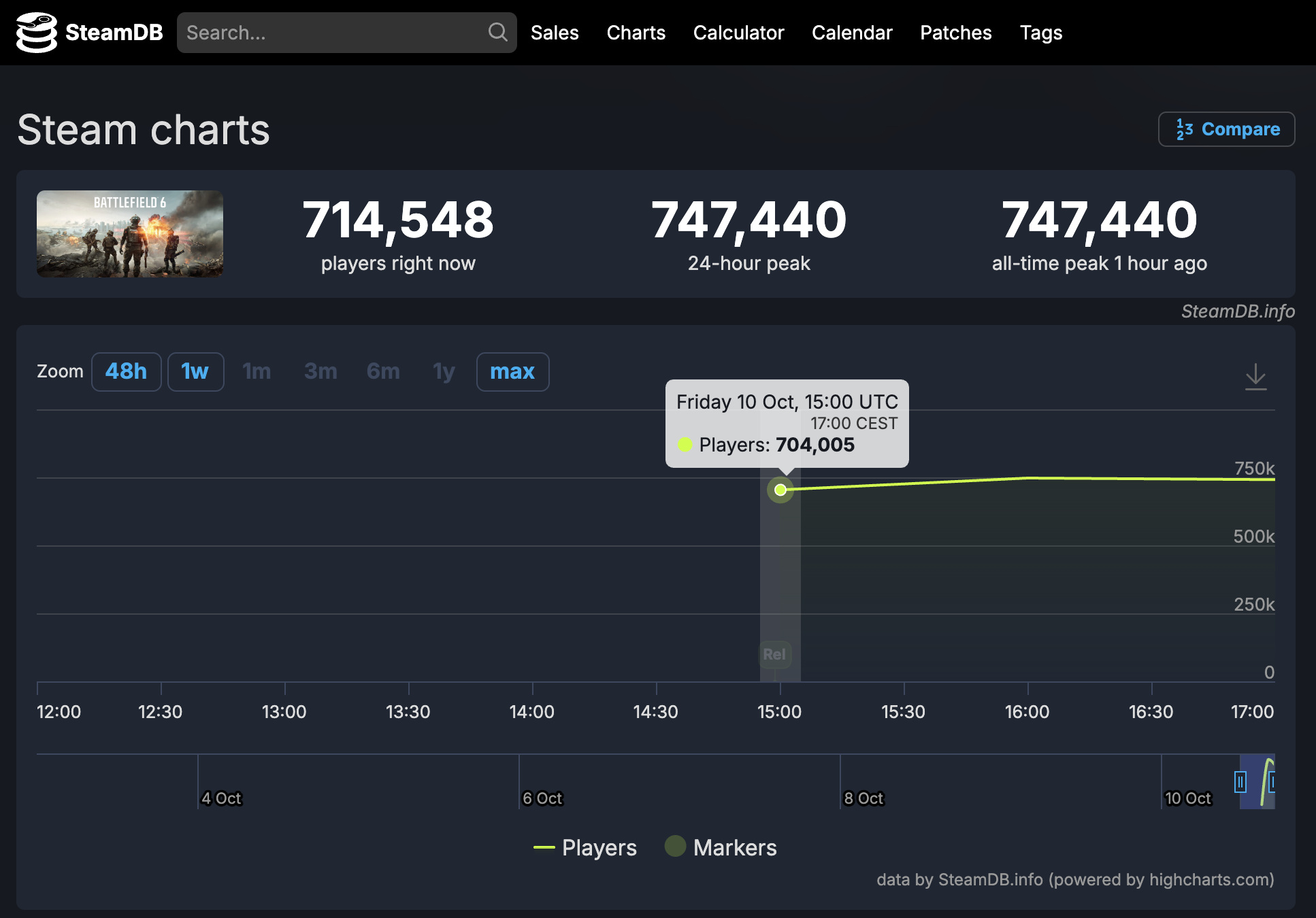 Neben Steam kommen noch zahlreiche Spieler auf anderen Plattformen wie der EA App, dem Epic Games Store und den Konsolen hinzu. Erfahrungsgemäß kaufen die meisten Spieler Battlefield 6 über die EA App, was die tatsächliche Gesamtspielerzahl deutlich höher ansetzt als nur die Steam-Zahlen vermuten lassen.