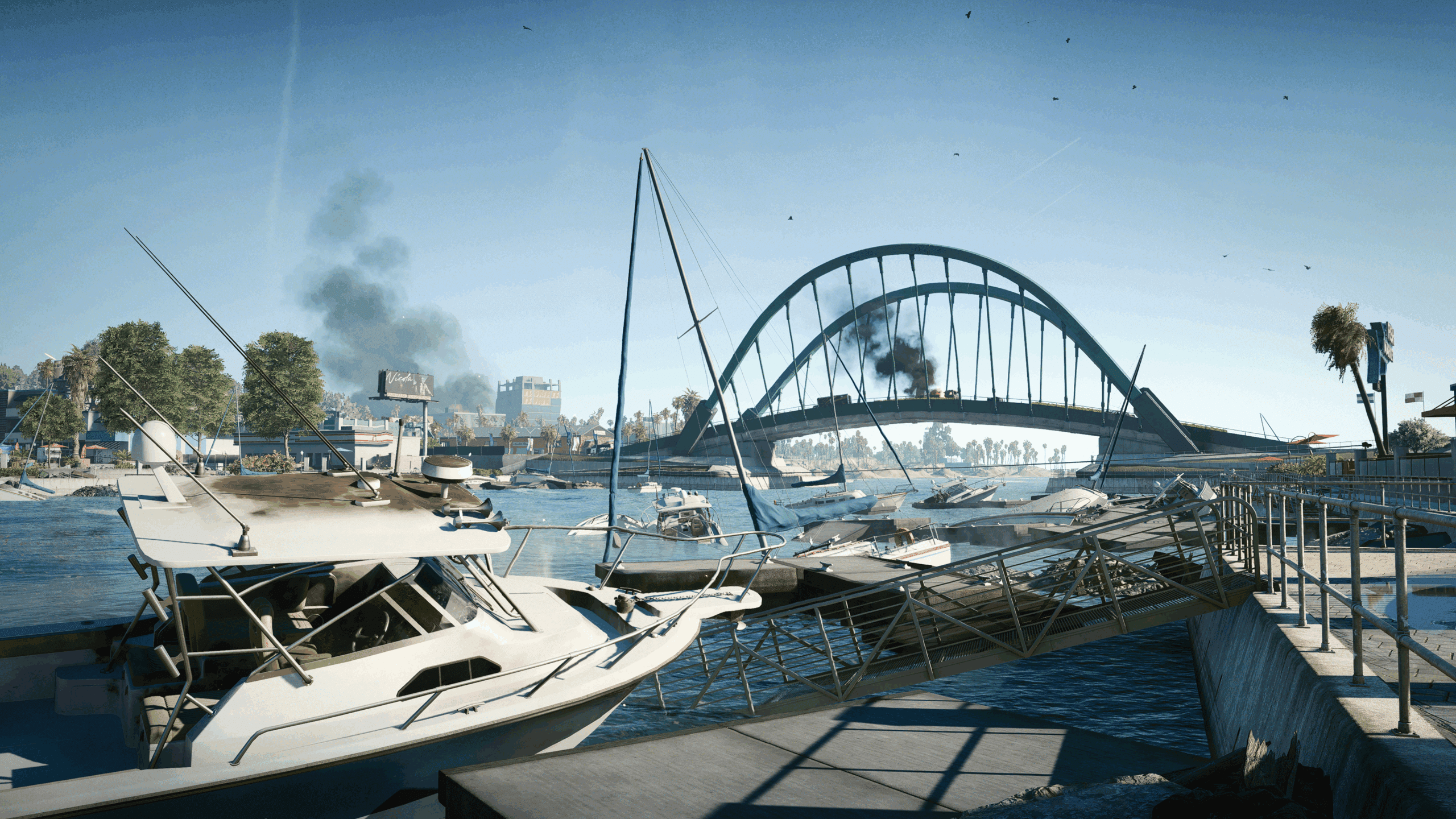 Fort Lyndon, eine riesige Sandbox zwischen kalifornischen Hinterhöfen und zerstörbaren Küstenarealen, ist die bislang größte Map der Franchise. Hier treffen bis zu 100 Spieler aufeinander, um in klassischer Battlefield-Manier um den Sieg zu kämpfen.