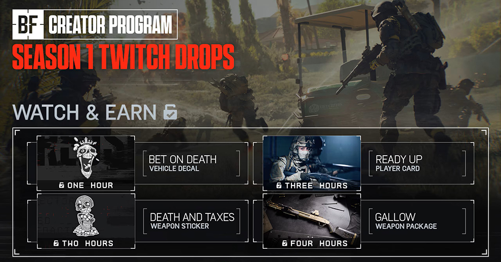 Vom 02. Dezember um 16:00 Uhr bis 04. Dezember um 16:00 Uhr deutscher Zeit können Spieler vier einzigartige Ingame-Gegenstände sammeln, indem sie beliebige Battlefield-6-Streams mit aktivierten Drops verfolgen. Wer in dieser Zeit aktiv zuschaut, darf sich als einer der Ersten die neuen Items sichern, bevor die Aktion für alle geöffnet wird.