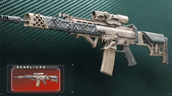 • SCAR-L “SCARL-L24”: Ein Skin mit markantem Schuppenmuster und Haifisch-Optik im Bereich des Magazinschachts.​