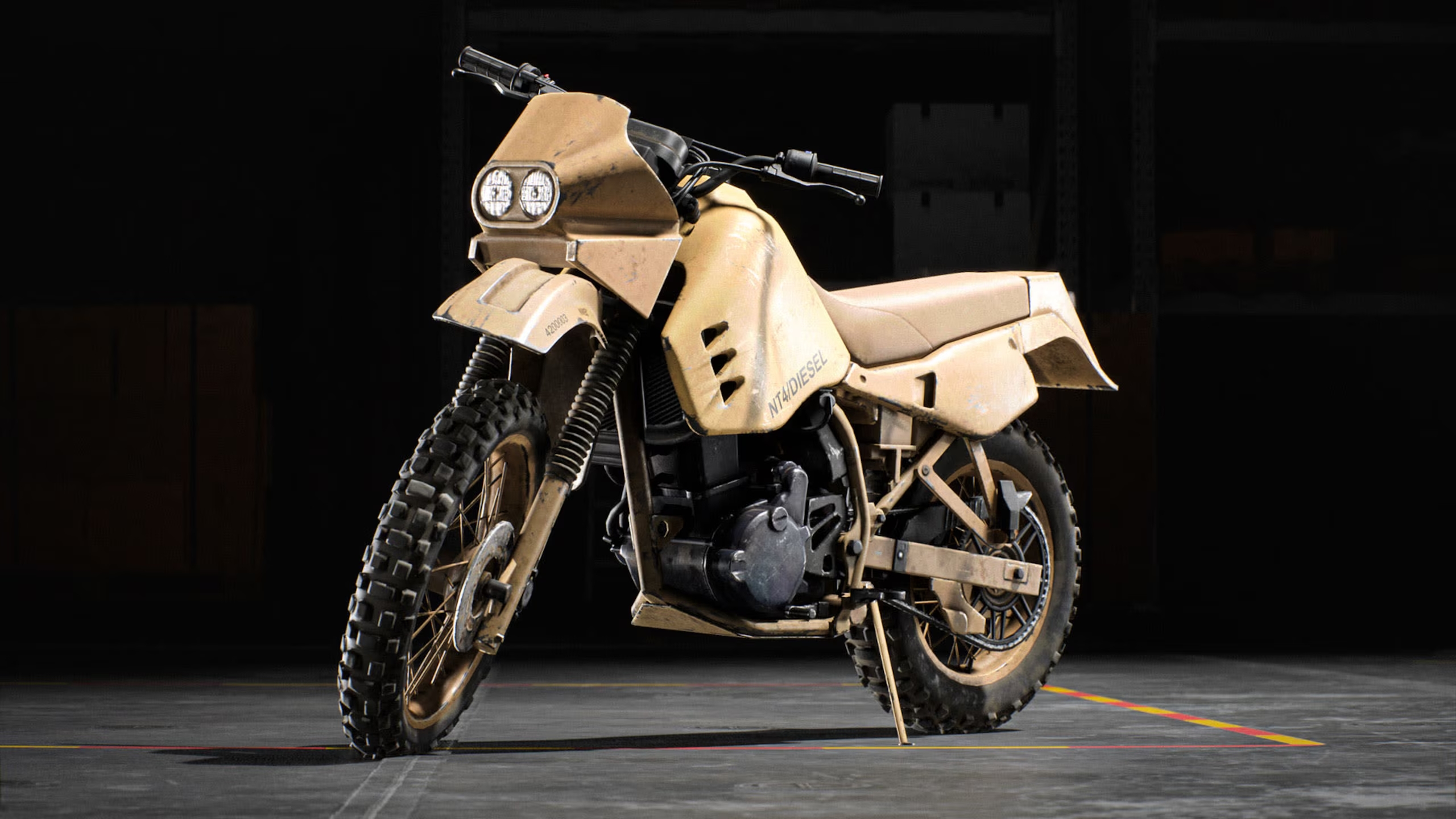 - Dieses Motorrad wird das schnellste Landfahrzeug im Spiel sein, auf Kosten dessen, dass sein:e Fahrer:in – und die Person im Soziussitz – den Elementen des Schlachtfelds völlig schutzlos ausgeliefert sind.