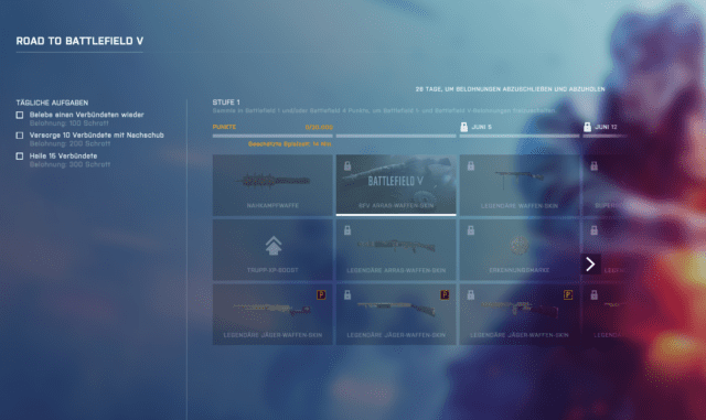 Schaut also am besten regelmäßig In-Game auf die Road to Battlefield V Events.