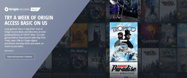Die kostenlose Testphase bietet alle Vorzüge, die Abonnenten von Origin Access Basic genießen, einschließlich:
