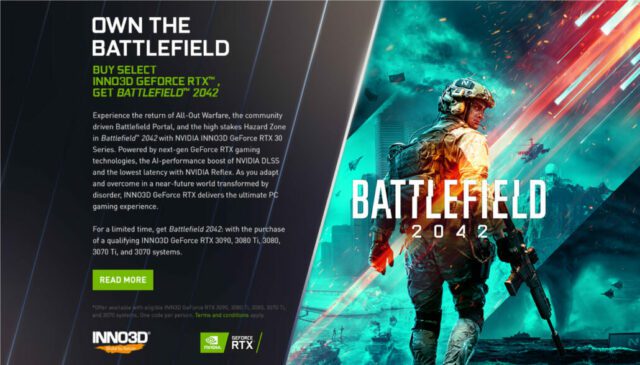 Im Hinblick auf die Ankunft des mit Spannung erwarteten Battlefield 2042 und im Rahmen der bereits angekündigten Zusammenarbeit mit NVIDIA bietet Electronic Arts nun eine weitere Möglichkeit an, die Battlefield 2042 Standard Edition zusätzlich zu einem eventuellen sowie geplanten Hardwarekauf als gratis Zugabe zu erhalten.