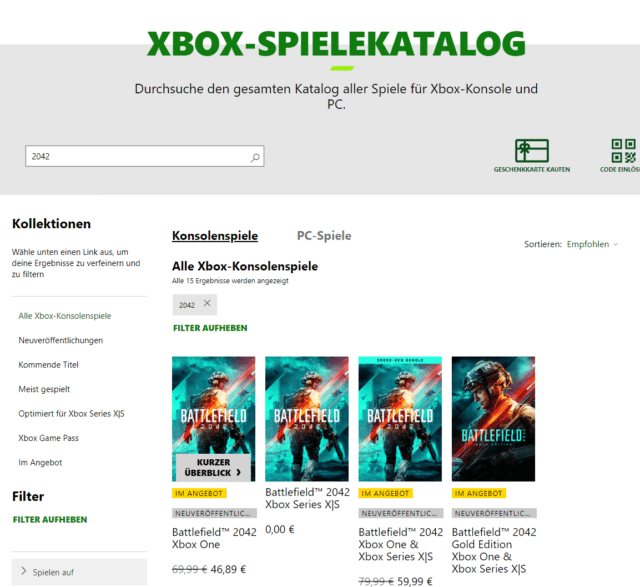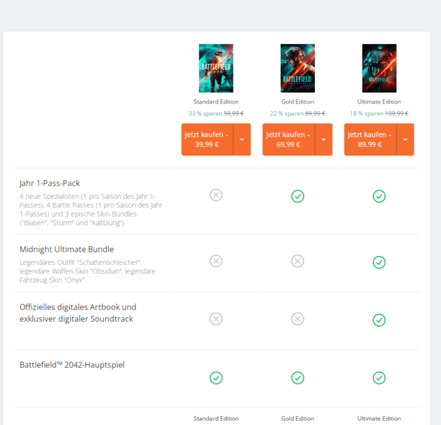 Leidglich der Playstation Store scheint derzeit noch keine Angebote für Battlefield 2042 zu haben.