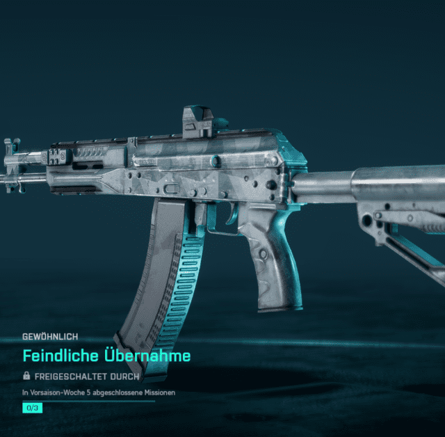Alle Spieler in Battlefield 2042 können seit Heute die fünfte und letzte von voraussichtlich insgesamt 12 verfügbaren Missionen im Rahmen der Battlefield 2042 Pre-Season in diesem Jahr abschließen. Wie auch die Wochen zuvor wartet nach Erledigung der drei Aufgaben eine Belohnung auf euch. Die fünfte wöchentliche Mission ist ab sofort im Spiel verfügbar und belohnt euch mit einem epischen Waffenskin “Feindliche Übernahme” für all eure Waffen.