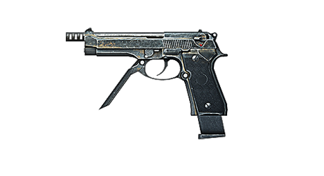 Die M9 – früher als “Pistole, Halbautomatisch, 9mm, M9 bekannt – wurde 1985 als primäre Seitenwaffe des gesamten US Militärs auserwählt. Die M9 wurde in Italien entwickelt und nach einer Reihe umstrittener Tests, bei denen sie anderen Waffen aufgrund ihrer hohen Qualität und des geringen Preises nur knapp voraus war, auserwählt. Diese M9 ist mit einem Dämpfer ausgestattet, der das Mündungsfeuer und auch die Lautstärke des Abschusses verringert.