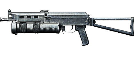 Die in Russland entwickelte Maschinenpistole mit einem spiralförmigen Magazin mit hoher Kapazität.