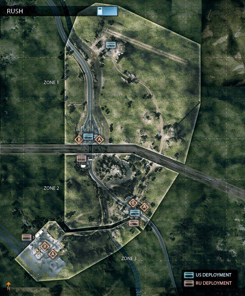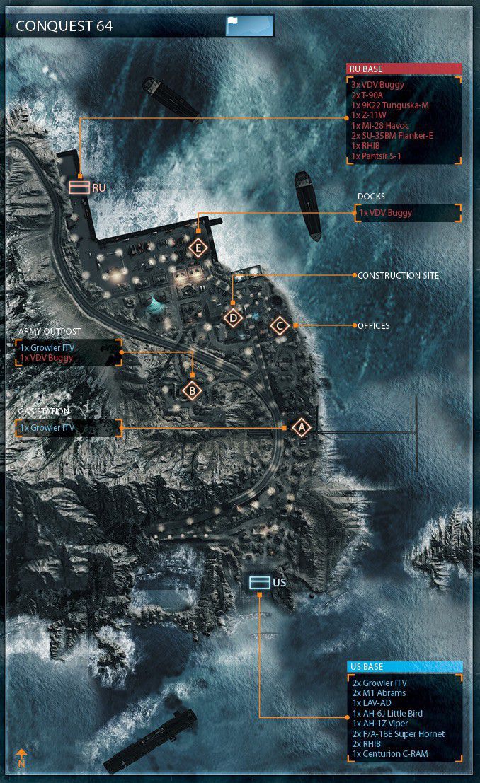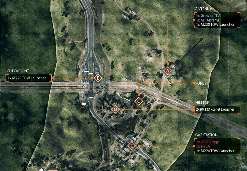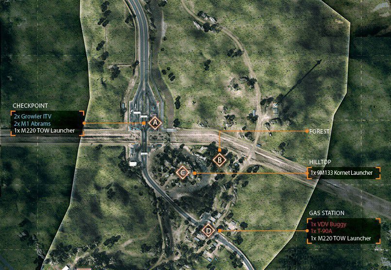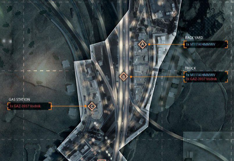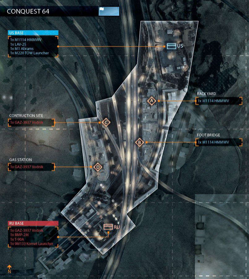 Eine der Inspirationen für diese Karte stammt von einem Foto von Teheran in der Nacht. Man startet in den Bergen und arbeitet sich bis zur Stadt durch. Die Nachtkarte hat bietet einen guten Mix aus Fahrzeugen und Infantrie. Es startet mit einem großem Raum für Fahrzeuge und endet mit weniger Fahrzeugen und einem