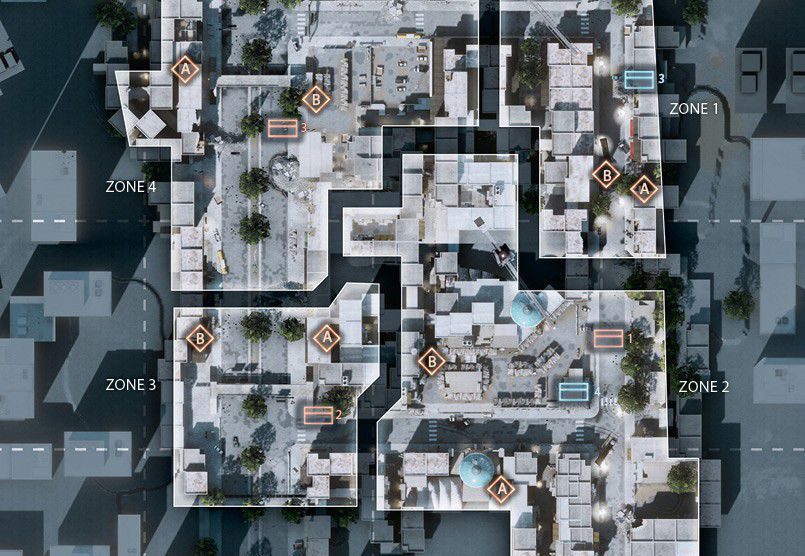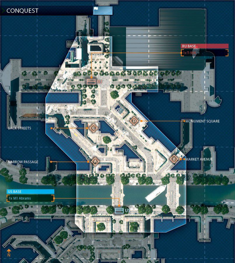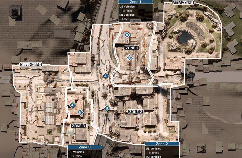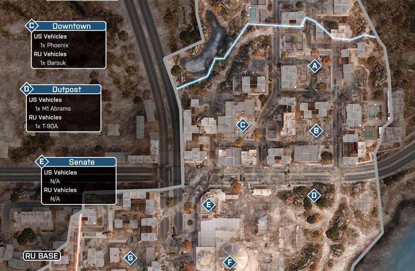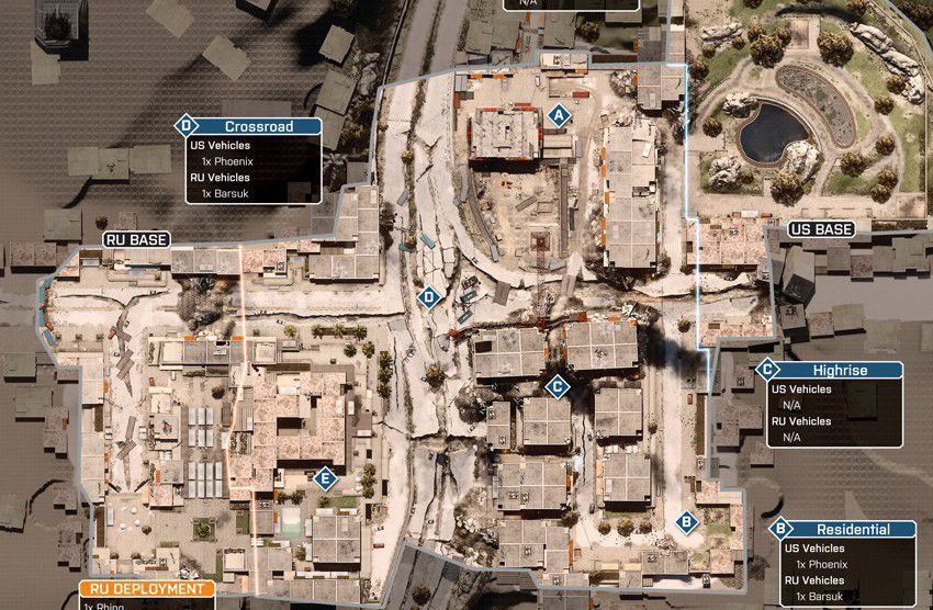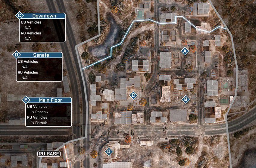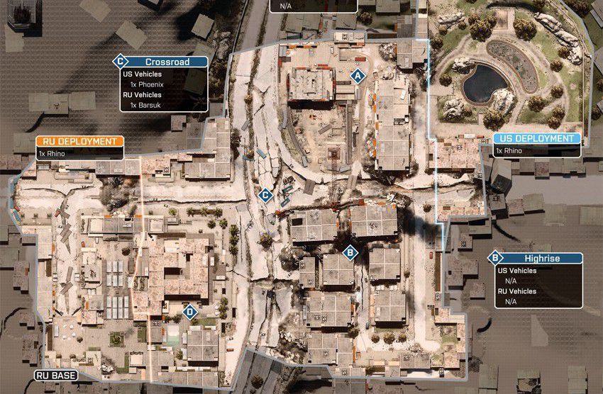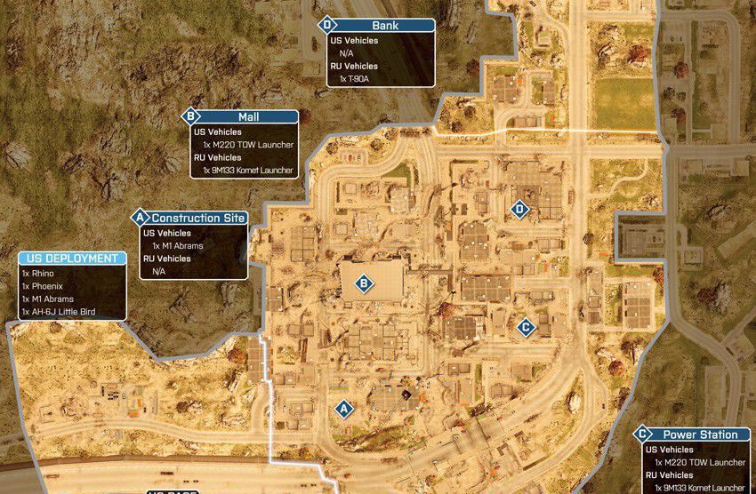 Das Szenario dieser Karte spielt sich in einem völlig verwüsteten Bankenviertel ab. Das Gefecht soll sich auf dieser Karte um ein hohes Gebäude, welches mittig positioniert ist, drehen. Um das Gebäude herum gibt es eine große Stadt.
