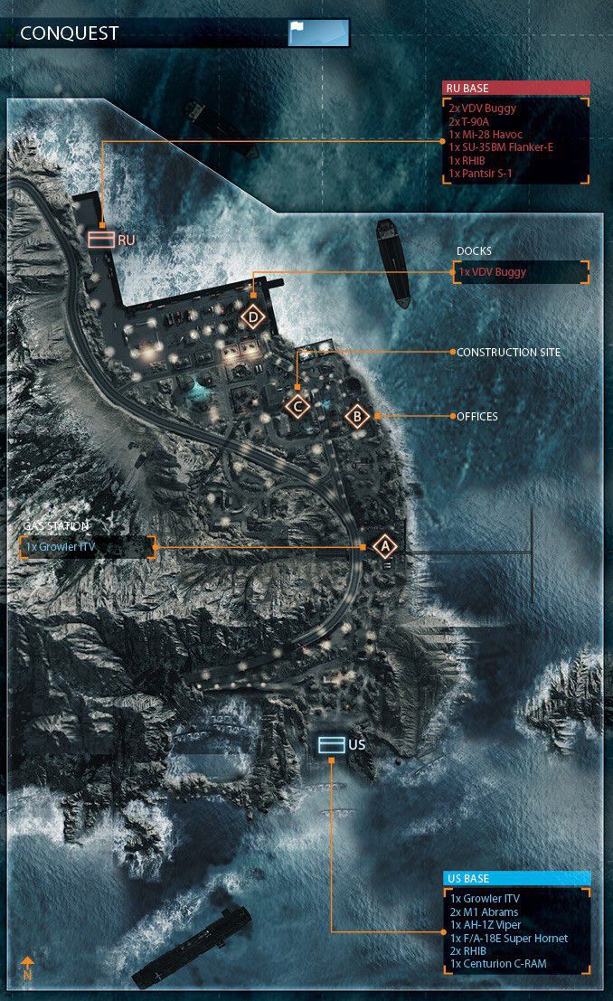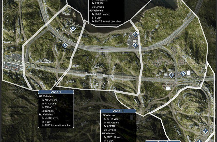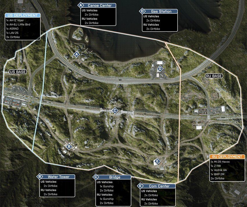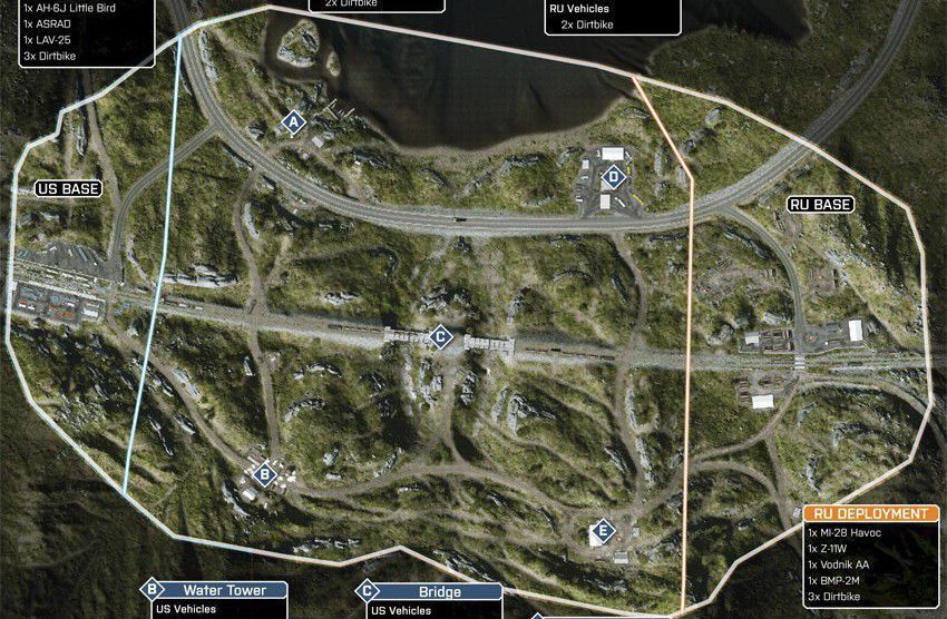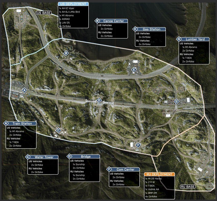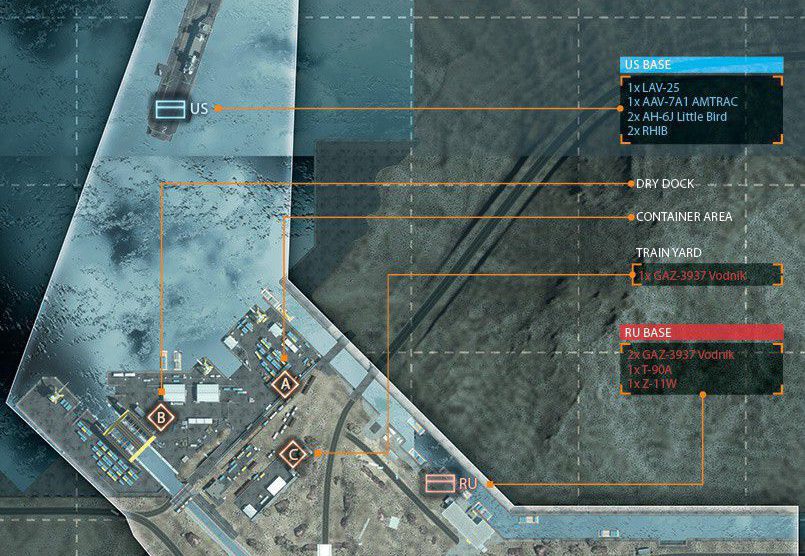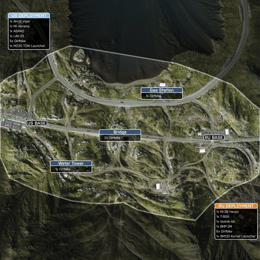 Diese Karte ist in einer winterlichen Bergumgebung angesiedelt, in deren Mittelpunkt eine Pipeline-Basis ist. Die Karte ist so angelegt, dass du dich zu Fuß und mit dem Fahrzeug über die schmalen Straßen und unebene, schneebedeckte Oberflächen vorarbeiten musst.