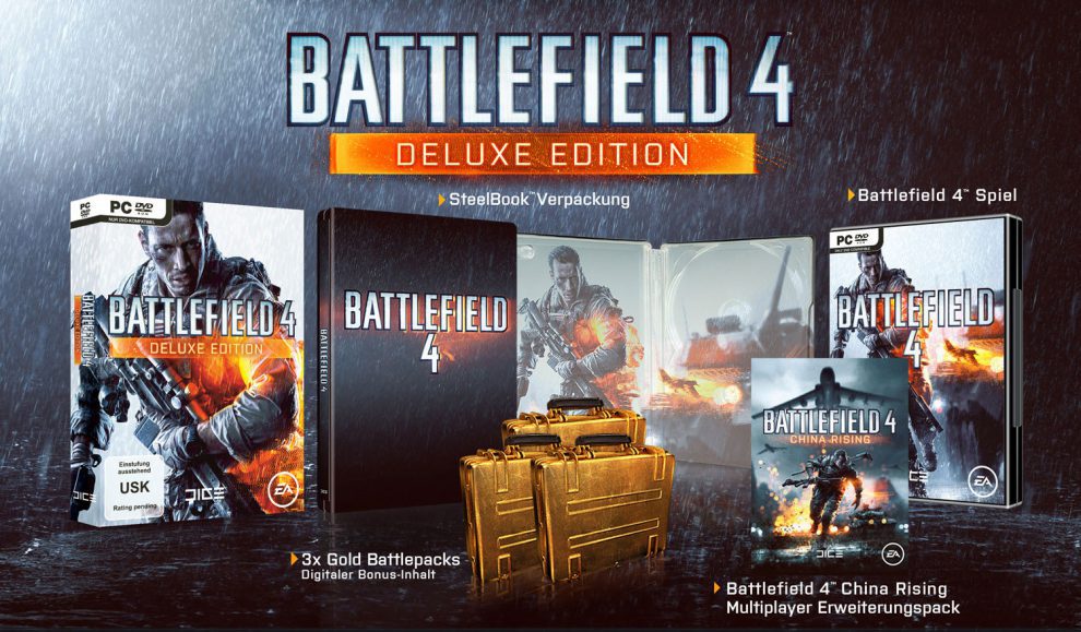 Zuvor erhielten Battlefield 4 Vorbesteller bei Amazon.de lediglich den Zugang zum Battlefield 4 Erweiterung “China Rising” und ein Steelbook. Inzwischen erhalten Vorbesteller aber auch die drei goldene Battlepacks hinzu.