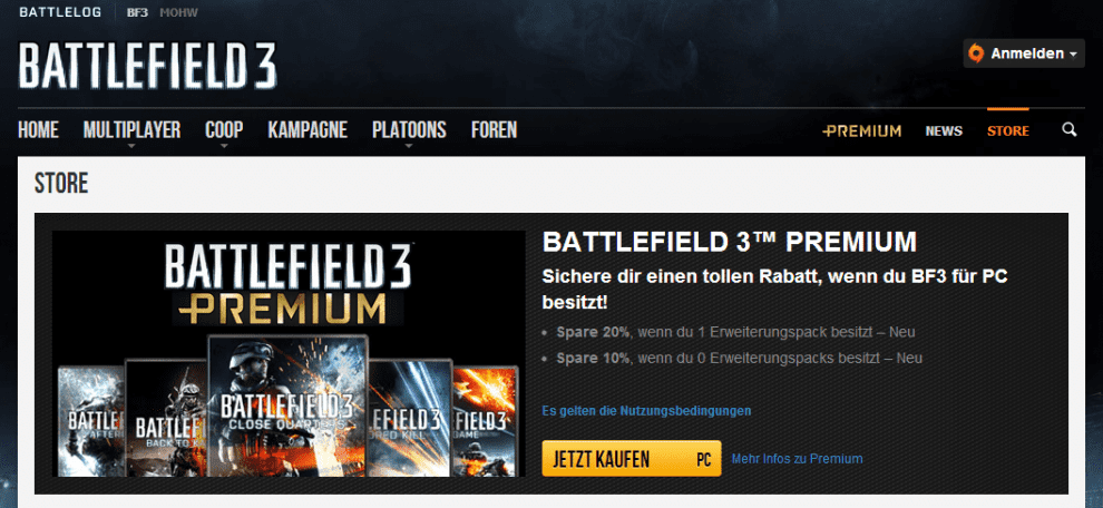 Seit Battlefield 3: Premium im Juni 2012 veröffentlicht wurde, hat EA rund 2,9 Millionen Premium Mitglieder für dieses Angebot begeistern können. Um dies zu feiern hat DICE ein neues Discount Programm eingeführt, welches es für alle Battlefield 3 PC Spieler leichter macht ihren Account um Premium zu erweitern und dabei auch noch zu sparen. Dabei zählt: Je mehr Erweiterungspakete man bereits besitzt, um so mehr spart man dabei!